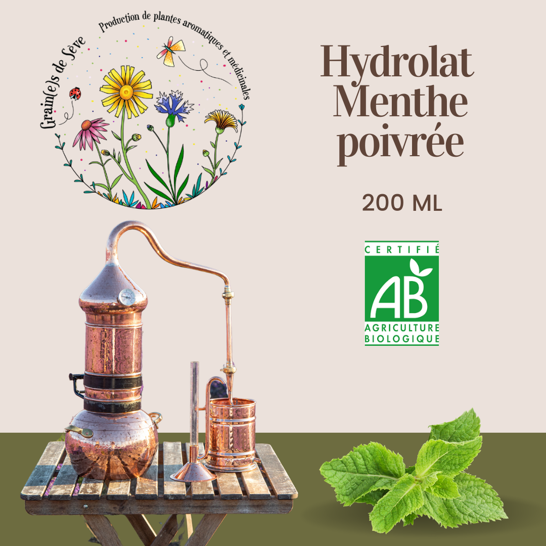 Utilisée depuis l’Antiquité pour soigner les indigestions, la menthe poivrée est un tonique agissant sur toutes les fonctions de l’organisme (cutané, veineux, digestif, physique). L’hydrolat, très rafraichissant et aux multiples propriétés est très apprécié pendant les fortes chaleurs.