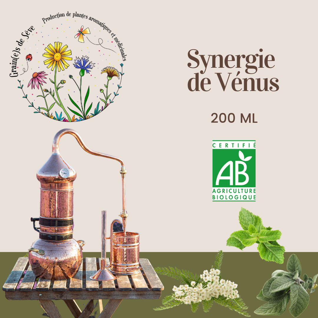 Cette synergie composée d’hydrolat d’achillée millefeuille, de sauge officinale, et de menthe poivrée vous apportera un soulagement et un soutient pour la période de la ménopause.