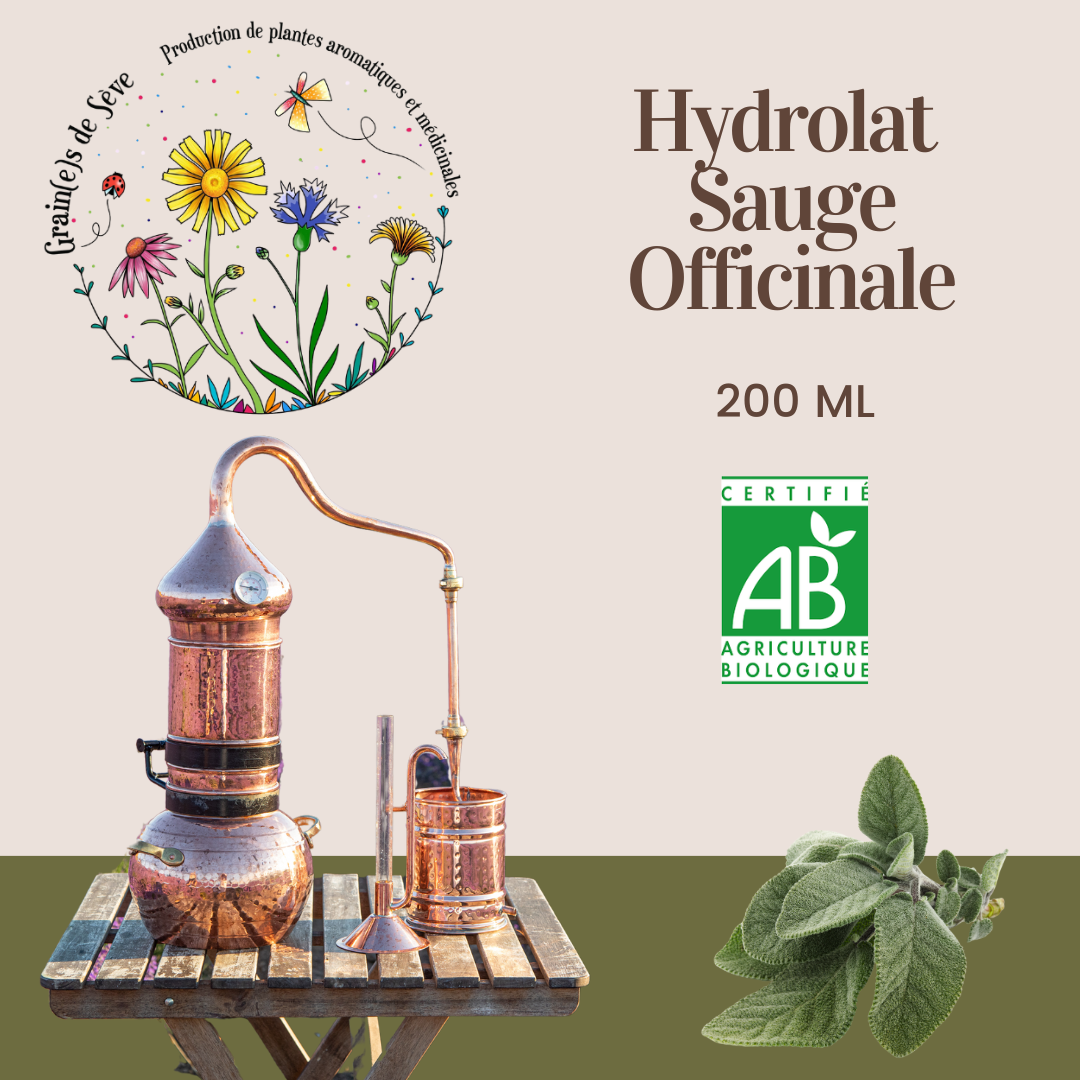 En ce qui concerne les propriétés de l’hydrolat de Sauge officinale, il est oestrogène like*, régulateur des glandes sudoripares (antitranspirant)* et des glandes sébacées (peaux grasses)*. Il est également anti-infectieux* (antiseptique buccal et digestif, antifongique).